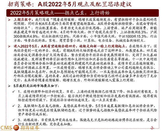 【招商策略】拐点已至,上行将始——A股2022年5月观点及配置建议