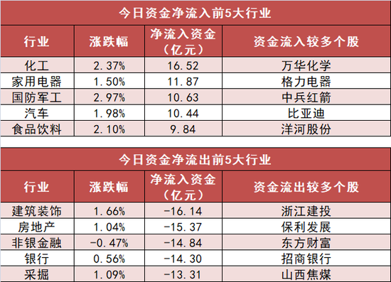 28个申万一级行业中,15个行业实现资金净流入,其中化工行业净流入16.52亿元居首。
