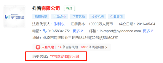 此外,据国家企业信用信息公示系统显示,原字节跳动有限公司(已更名为抖音有限公司)旗下的北京字节跳动科技有限公司也已更名为北京抖音信息服务有限公司。