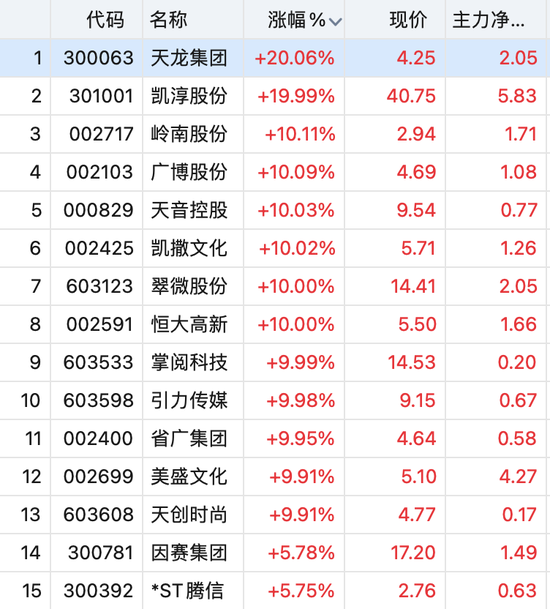 建筑装饰板块多达22只个股涨停,其中金埔园林“20cm”涨停,广田集团、龙建股份、正平股份、园林股份等20余只个股涨停,美晨生态、蕾奥规划等个股大涨。