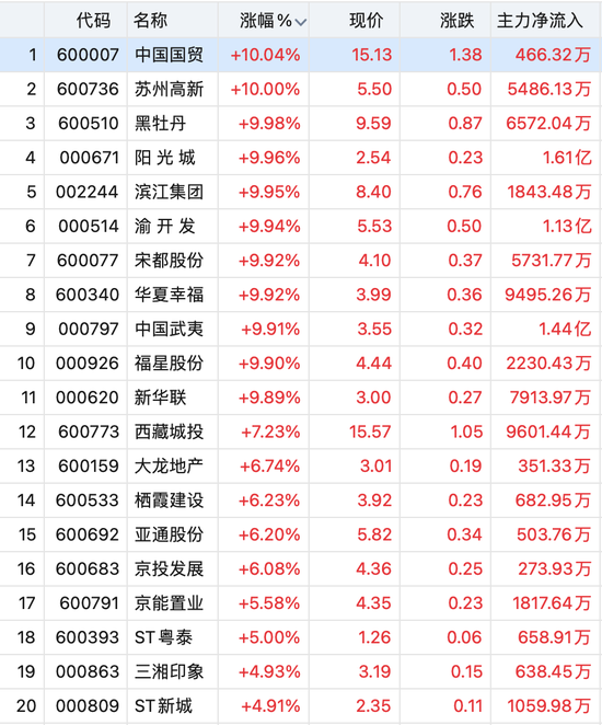 房地产开发板块集体大涨,中国国贸、阳光城、华夏幸福等11只股票涨停。