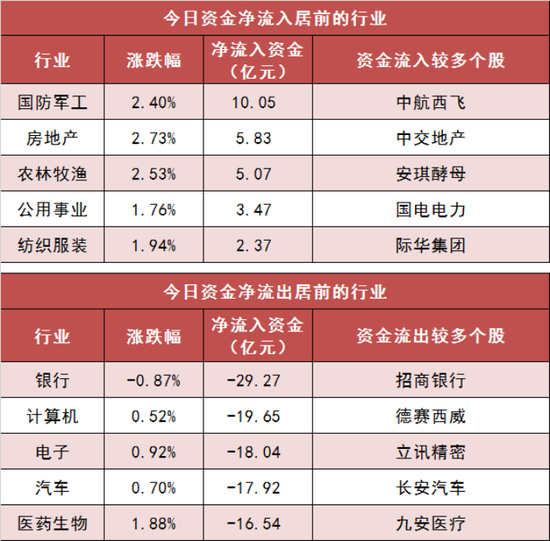 28个申万一级行业中,8个行业实现资金净流入,其中国防军工行业净流入10.05亿元居首。