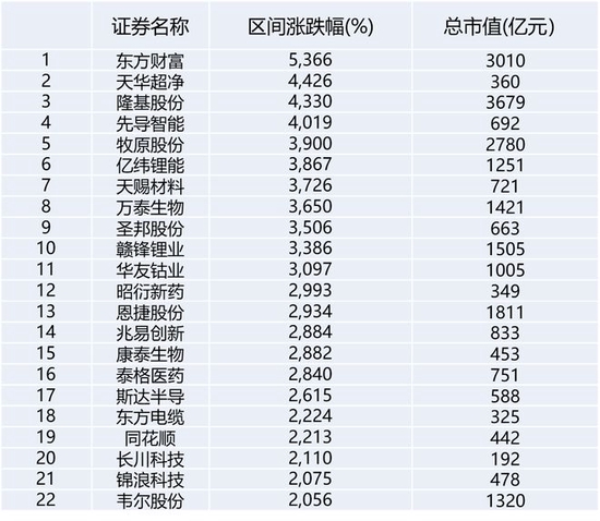 我简单统计了一下,过去10年(2012-2022)中国有很多股价涨幅惊人的股票,涨幅20倍以上的就有22家,还有很多10多倍涨幅的股票。过去10年的20倍股,主要集中在生物医药、半导体、新能源等行业。这跟我们的观感是差不多的,这些行业都是高速增长的行业,代表着未来的发展趋势。