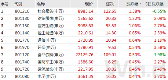 5月12日,由于A股市场整体表现平稳,行业板块走势亦开始分化,涨跌几乎各半。其中,社会服务、纺织服装、医药生物、轻工制造等多个板块涨幅居前。
