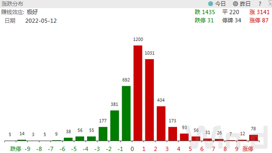 从市场整体涨跌分布来看,上涨公司有3100多家,涨停公司达78家;下跌公司仅1400多家,市场赚钱效应依旧明显。