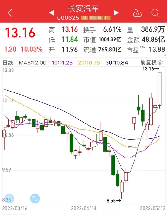 5月13日,汽车指数大涨4.61%,居于申万一级行业之首。板块内中捷精工、长安汽车、通达电气等20余股相继涨停。港股表现同样亮眼。长城汽车大涨12.46%;小鹏汽车、吉利汽车涨逾8%;理想汽车、比亚迪股份等涨幅在5%以上。
