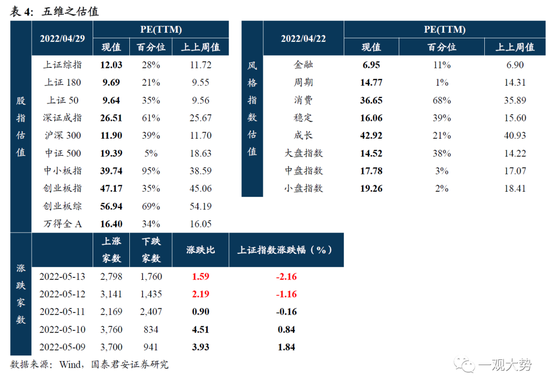 ?吃饭行情,阶段性做多,但不宜追高。股票(预期)与经济是一个反复追赶的关系,前期市场暴跌的过程中股票估值已领先于经济掉到了地板上,接近过去5年以来的最低值。我们在五一节前一周的报告《破釜沉舟》中提示了5月市场技术性反弹尤其是前期估值深度压缩板块的反弹的机会。阶段性做多与技术性反弹(吃饭行情)还有空间:1)极低的估值水平,进一步杀估值的动能较低,意味着抛压减小;2)上海进入复工复产,供应链修正的预期边际改善;3)一季报业绩已经披露完毕,二季度业绩预期已经处于非常低的水平,因此基本面利空相对处于真空期。A股的筑底和磨底需要时间,但阶段性做多的阻力要比做空的阻力更小。仍需要指出的是市场逻辑并未从反弹转向反转,股票价格在反弹后会重新审视基本面修复的力度(胜率)与平衡微观交易结构(赔率),3150-3200以上做多动能会逐步衰减,可以阶段性做多,但不宜追高。