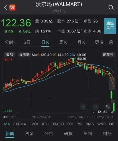 多重因素影响下,周三零售板块被带崩。沃尔玛再跌6.79%,百思买股价下跌10.5%,梅西百货跌11%,科尔百货跌超11%,Dollar Tree跌超16%。