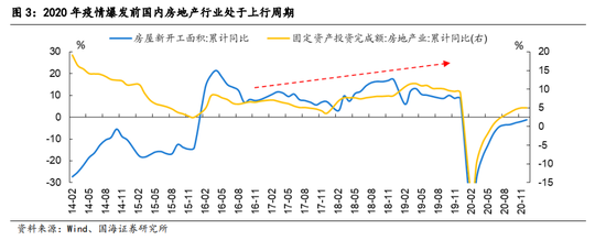 地产方面,2020年疫情爆发前国内房地产行业处于上行周期,疫情爆发后,虽然中央层面态度偏紧,但在宽松的货币政策以及地方政府的政策支持下,房地产市场仍快速回暖。具体来看,2020 年初疫情扩散时中央多部门表态,表明房地产长效调控机制不会因疫情短期冲击而发生改变。但随着两次5年期LPR利率的下调(共15bp)以及累计30bp的降息,国内信用需求仍出现了明显扩张。与此同时,各地方政府于上半年亦出台了多项针对房地产市场及房地产企业的帮扶政策,包括支持快速回笼资金和降低拿地支出压力等,再度提振了房企的投资信心。在此形势下,2020年土地成交额快速上升,土地溢价率攀升至15%,房地产投资增速于7月份回升至两位数,二季度开始,国内房地产市场逐步出现“供需两热”现象。但好景不长,6月政治局会议再次重点强调“房住不炒”的政策基调,随后“三道红线”约束落地,国内地产政策迎来长周期拐点。