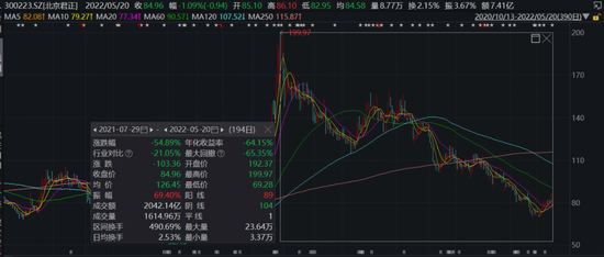 其中,北京君正股价自去年7月29日的历史高位已经下跌54.89%。
