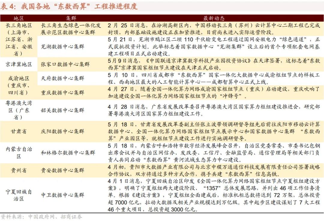 “东数西算”即“东数西算工程”,指通过构建数据中心、云计算、大数据一体化的新型算力网络体系,将东部算力需求有序引导到西部,优化数据中心建设布局,促进东西部协同联动。 2022年2月17日,从国家发改委获悉,国家发改委、中央网信办、工业和信息化部、国家能源局联合印发通知,同意在京津冀、长三角、粤港澳大湾区、成渝、内蒙古、贵州、甘肃、宁夏等8地启动建设国家算力枢纽节点,并规划了10个国家数据中心集群。“东数西算”工程正式全面启动。