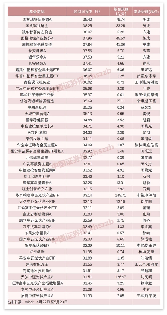 指数反弹之下,一大批新能源主题基金净值也在“收复失地”。Wind数据显示,4月27日以来全市场有673只(以初始基金为统计口径)基金涨幅超过20%,其中新能源主题基金或重仓新能源个股的基金占比较大。