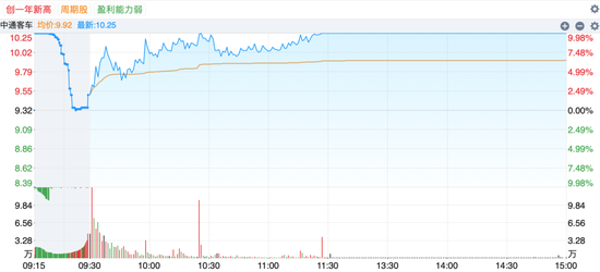 其中,中通客车再度涨停,收获9连板。
