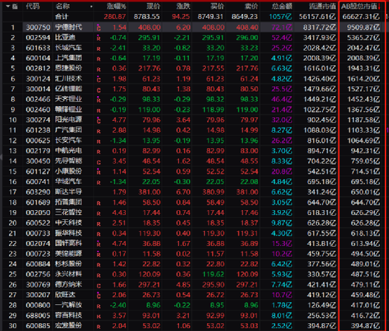根据券商行情软件显示,仅A新能源车板块市值就高达6.6万亿元,宁德时代、比亚迪、长城汽车、上汽集团、恩捷股份等等预计都将受益。