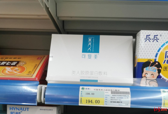 其中一家药店的白膜零售标价为168元/盒(5贴),加上买二赠一的活动,单价可低至112元/盒,每贴仅22元左右,比线上日常价格便宜8元左右;另有一家药店的可复美类人胶原蛋白敷料零售标价为194元/盒(5贴),加上买三赠一的活动,单价可低至145.5元/盒,每贴仅29元左右,比线上日常价格便宜10块左右。