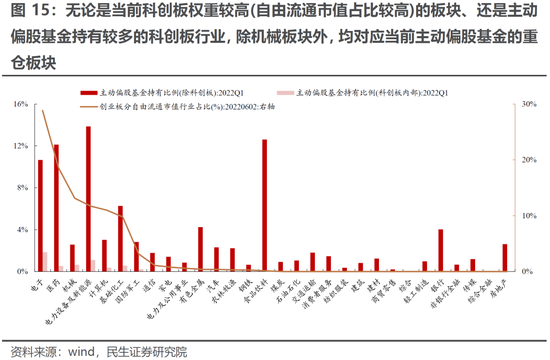 随着科创50在本轮反弹中(4月27日以来)明显跑赢Wind全A指数,部分投资者认为当下科创板已经具备了成为2012年创业板的潜力。我们不否认科创板估值上已大幅降低的事实。但实际上,机构投资者在两个时点的认知层面是存在明显差异的:在2012~2015年创业板“牛市”期间,表现较好且占创业板权重比例较高的行业(除医药板块外),在2012Q4并非主动偏股基金的重仓板块,这意味着2012~2015年创业板牛市背后也是投资者挖掘新的产业趋势、在“新大陆”寻求“新共识”的过程。对于科创板而言,我们发现:无论是当前科创板权重较高(自由流通市值占比较高)的板块、还是主动偏股基金持有较多的科创板行业,均对应当前主动偏股基金的重仓板块(除机械板块),这意味着当下投资者对于科创板的挖掘更多的是基于已有共识的延伸,而并非是对于新的产业趋势的挖掘。从这一点看,当下科创板可能难以复刻2012年底的创业板块。更有可能是2021年1月的恒生科技股,基于一种短期共识,带来存量资金的腾挪效应,其高度和幅度是存疑的。