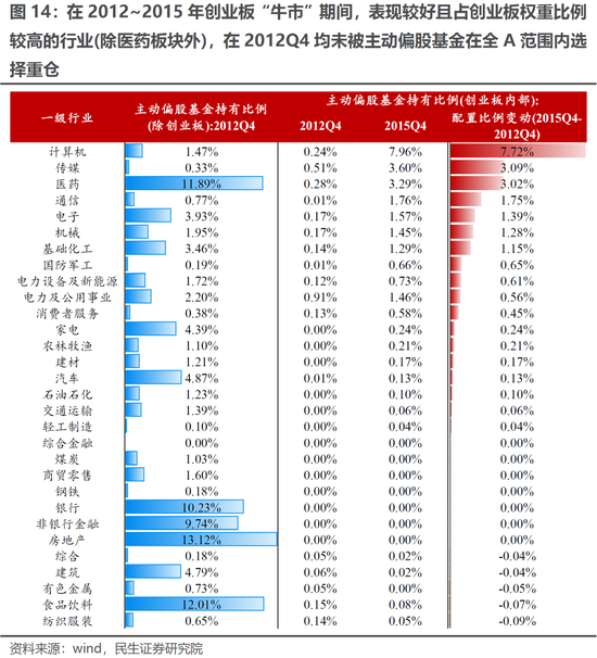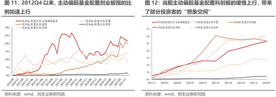 部分投资者认为当下科创板已经具备了成为2012年创业板的潜力。我们不否认科创板估值上已大幅降低的事实。但实际上,机构投资者在两个时点的认知是存在明显差异的:2012~2015年创业板牛市背后也是投资者挖掘新的产业趋势凝聚“新共识”的过程,彼时创业板的行业在主板中并不被投资者所重仓。而当下投资者对于科创板的持仓,恰好与在主板和创业板的配置行业高度重合。这更多类似2021年初港股互联网巨头和消费类核心资产之间的相似与关联。未来我们对科创板的相对乐观假设是2021年1-2月的恒生科技股行情,基于某种“刻舟求剑”的共识带来的市场大幅波动,对投资者带来极高的交易考验。真正历史级别的机会,往往会启动于不被共识认可的领域中。