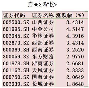 据同花顺iFinD统计显示,一周来(5月30日至6月2日)仅有4家券商股价出现下跌。涨幅榜上,山西证券上涨8.4%,中金证券上涨4.5%,华林证券上涨4.3%,涨幅位居前三名。