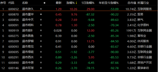 但也有“刀尖上舔血”的现象发生,游久游戏、猛狮科技进入退市整理期后股价涨幅较大,今日均涨停。
