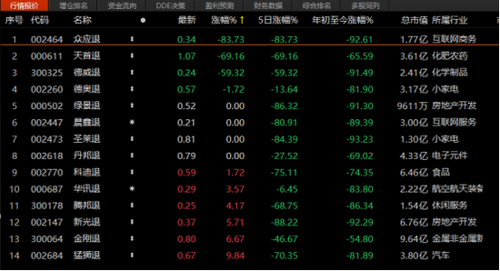 退市股“末日狂欢接盘”、“灰飞烟灭式暴跌”备受关注,截至当前,沪市、深市进入退市整理期的个股分别12只、14只。今日众应互联、天首发展、德威新材3只个股今日退市整理期首日,股价暴跌。