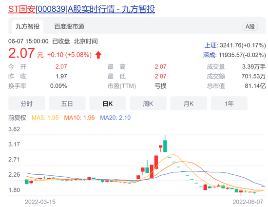 6月2日,ST国安(维权)公告,北京一中院裁定对中信国安集团等七家公司(包括中信国安有限公司在内)实质合并重整,并指定国安集团管理人担任国安集团等七家公司实质合并重整管理人。6月7日,公司股价连续收出两个一字涨停。