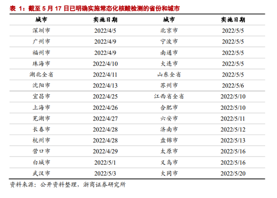 截至5月17日,我们统计的数据显示,全国已有32个省份和城市在高频核酸检测方面做出重要尝试,其中深圳是开创者,我们预计未来该方式会进一步向核心城市与边境口岸城市扩围。