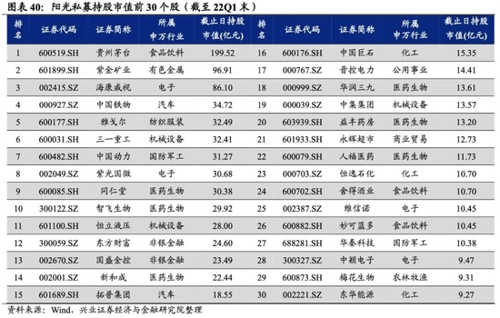 个股层面上,阳光私募持股市值前五的重仓股分别为贵州茅台、紫金矿业、海康威视、中国铁物和雅戈尔。