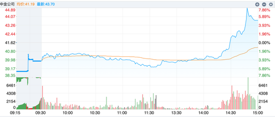 受减持消息影响,中金公司6月14日股价低开低走,盘中一度跌超5%,午后震荡上扬走出大逆转,至收盘上涨5%。如若按照6月14日收盘价格43.7元/股计算,海尔金盈此次减持或将套现近59亿元。