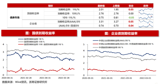 上周企业债到期收益率上升。上周企业债到期收益率(AAA)5年为3.31%(+0.05%)。