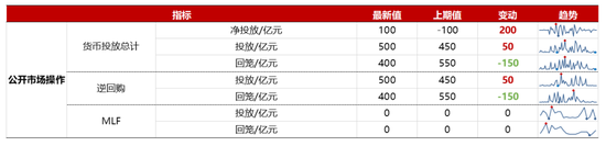 上周逆回购净投放100亿元。上周逆回购投放量为500亿元,逆回购回笼量为400亿元。