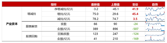 4. 上周A股小幅净减持、回购规模下降,本周限售解禁规模下降;
