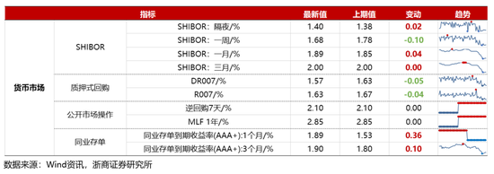 2. 市场利率方面,DR007和R007分别下降至1.57%和1.63%;