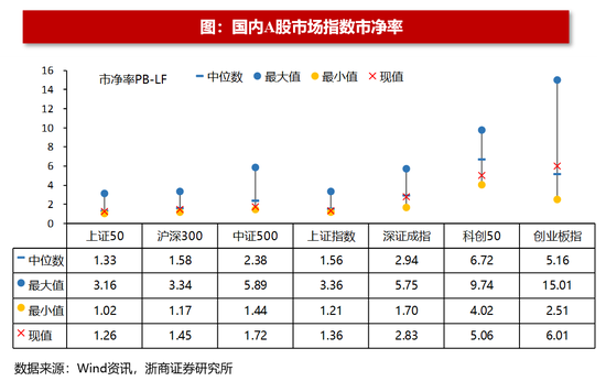 上周上证50、沪深300、中证500、上证指数、深圳成指、中小板指、创业板指的市净率分别为1.26、1.45、1.72、1.36、2.83、5.06、6.01。过去十年分位数分别为47.6%、30.6%、5.5%、16.2%、52.5%、7.4%、60.4%。