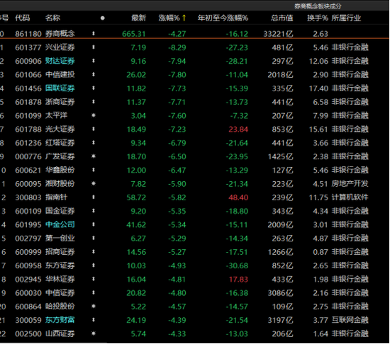6月2日至6月15日期间,被视为“股市旗手”的券商概念股回暖,“虽迟但到”的反弹为大盘上涨“摇旗呐喊”。但是今日表现“熄火”,板块回吐超过4%,49只个股收跌,其中16只个股跌幅超过5%,兴业证券跌幅超过8%。