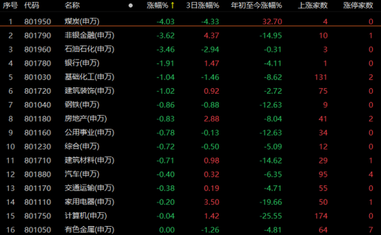 有人欢喜有人愁,煤炭“毫不犹豫”跌去4%,非银金融、石油石化跌幅均超过3%,建筑装饰、基础化工、银行板块跌幅也都超过1%,这也是拖累沪指失守3300点的重要原因。