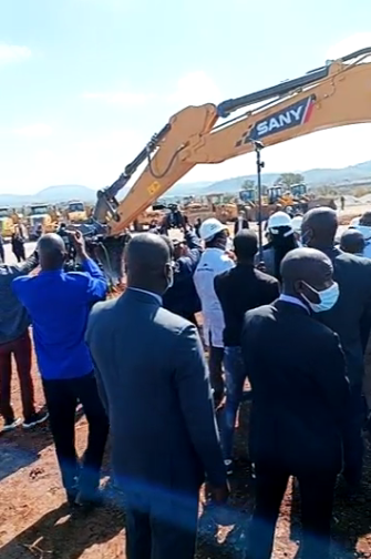 据了解,津巴布韦总统以及副总统于当地时间11点50分左右来到现场,并随后走向一台挖掘机,并在工作人员的帮助下登上挖掘机,亲手操控机器为Bikita锂矿开工铲下了第一波土,并宣布开工仪式开始。