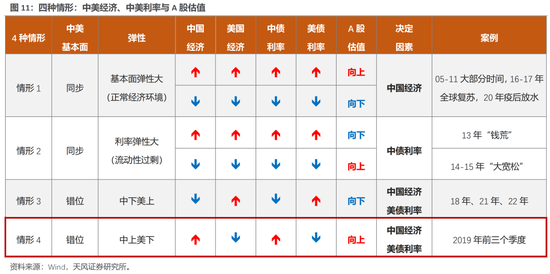 中期维度,A股走势持续独立于海外,需要国内经济快速复苏,以抵抗美国经济下行带来的出口和制造业的压力。正面案例是19Q1(经济中国上美国下),反面案例是18Q4(经济中美共振向下)。