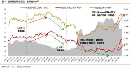 站在当前,二季度海外通胀数据超预期继续支撑美债利率高位运行,而从17年之后的经验出发,美债利率与核心资产的估值存在负相关关系。为应对通胀压力,美联储也开启了新一轮紧缩周期,流动性回收同样会推升美债利率水平。而由于缩表刚刚启动,目前流动性收缩的冲击还未显性化,一个现象就是美联储隔夜逆回购规模仍屡创新高(表明资金充裕、但面临资产荒),但后续不得不警惕流动性持续收缩引发的外资流出。