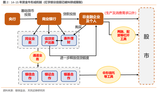 (2)14-15年的金融创新,则让银行体系的资金避开监管限制,并借助杠杆工具,放大了入市规模。其中有些在当时被允许,但15年之后逐步叫停或限制的手段: