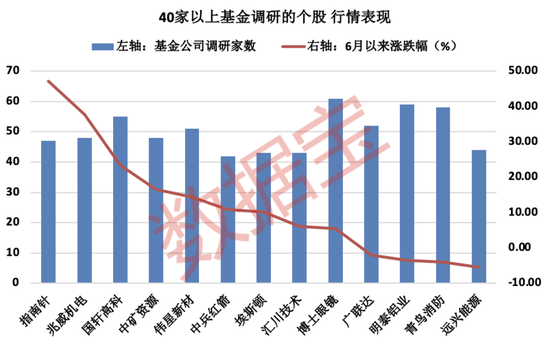6月以来,获得基金调研的公司股价平均上涨8.86%,跑赢沪深大盘涨幅。禾川科技、海天瑞声、集泰股份的股价月内上涨幅度均超65%。40家以上基金调研的个股平均上涨12.09%,指南针、兆威机电、国轩高科月内涨幅均超20%。