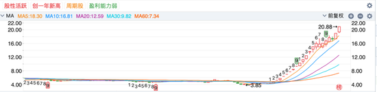 6月20日,中通客车上演“妖王”归来,尾盘拉升再度触及涨停,21个交易日累计涨幅近380%。