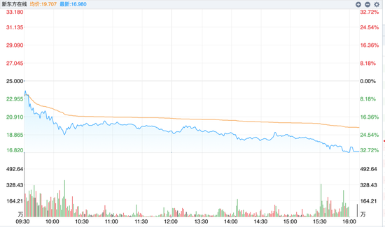新东方在线延续跌势,尾盘跌幅扩大至30%,成交额超40亿港元;至今日收盘跌超32%,上周五收盘跌超12%。