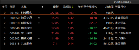 F5G概念板块大涨近3%,创维数字等6只相关概念股集体收涨。
