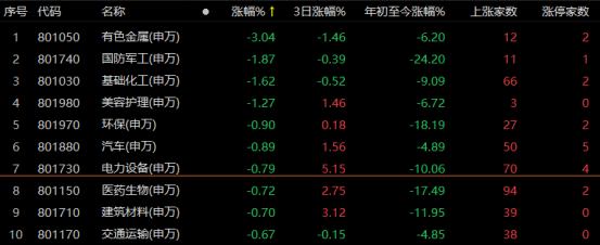 有色金属板块跌幅超过3%,北方稀土跌幅超过8%,紫金矿业跌近2%,赣锋锂业、天齐锂业跌幅约为3%;国防军工、基础化工板块跌近2%,中航沈飞跌幅超过2%,藏格矿业(维权)跌幅超过5%。