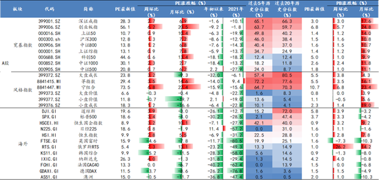 2.2、 市场估值:A股主要宽基指数估值多数上涨、ERP下行,海外估值涨跌互现