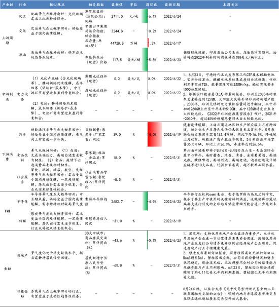 表7:本周(6.20-6.24)中观行业核心观点和重要信息一览