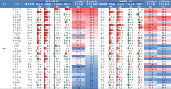 表4:本周(6.20-6.24)一级行业估值涨多跌少,电力设备、汽车领涨