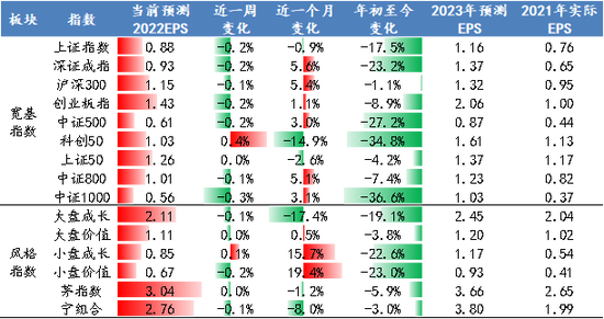 2.3、 盈利预期:主要指数盈利预期多数下调