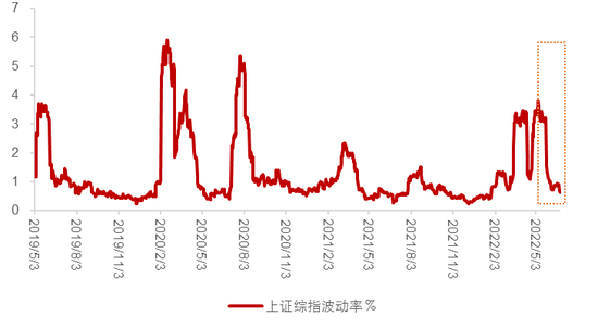 图3:上证指数波动率仍趋于向下,市场短期调整风险较低