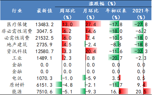 表13:本周(6.20-6.24)港股各行业涨多跌少